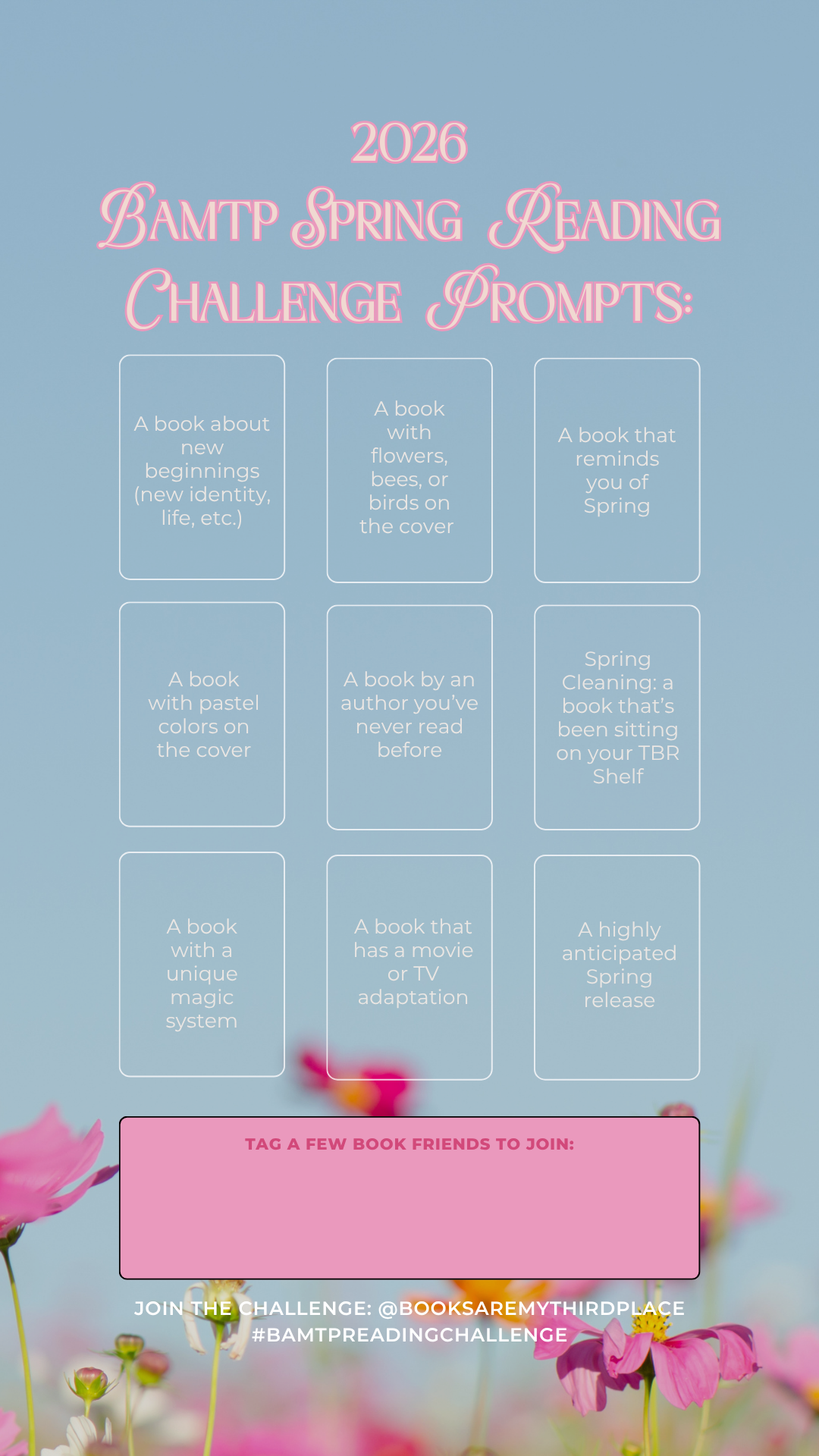 Happy reading, and hopefully see you in the Discord or on social. I can’t wait to see what you add to your Spring TBRs! Regardless, I love helping people discover a love for reading, finding amazing reads, and of course, connecting with the BAMTP community. I hope everyone is looking forward to a wonderful Spring of reading!